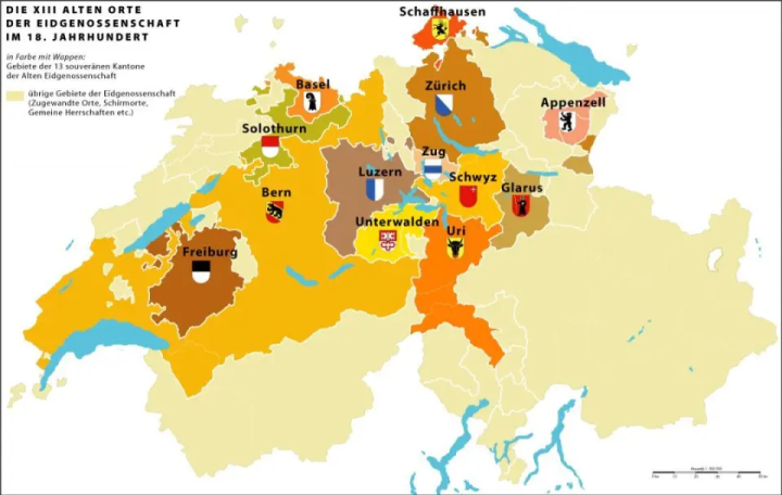 伯尔尼这座名气不大的城市(瑞士第四大城市)能够力压苏黎世、日内瓦等一系列大城市,成为瑞士的首都,与瑞士的历史有着密切的关系。今天的瑞士是四种语言(德语、法语、意大利语、罗曼什语)并立的国家。历史上的瑞士却是实打实的德语区。它的雏形是1291年,反对哈布斯堡王朝控制的乌里、施维茨及翁特瓦尔登3州建立的邦联。